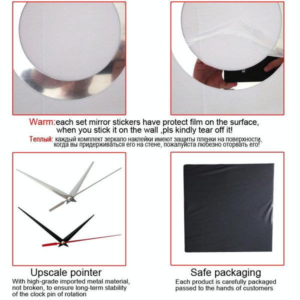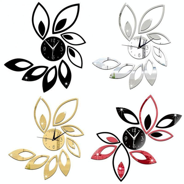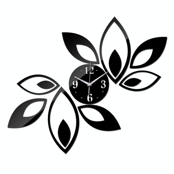 Flower Art Modern Design DIY Removable 3D Crystal Mirror Wall Clock Wall Sticker Living Room Bedroom Decor(Black)