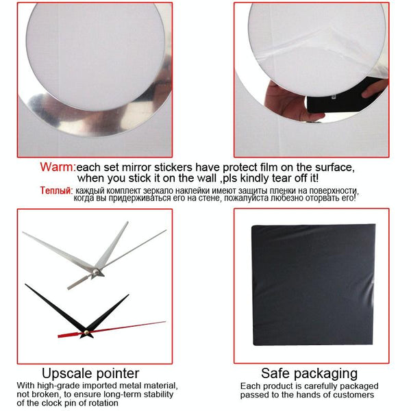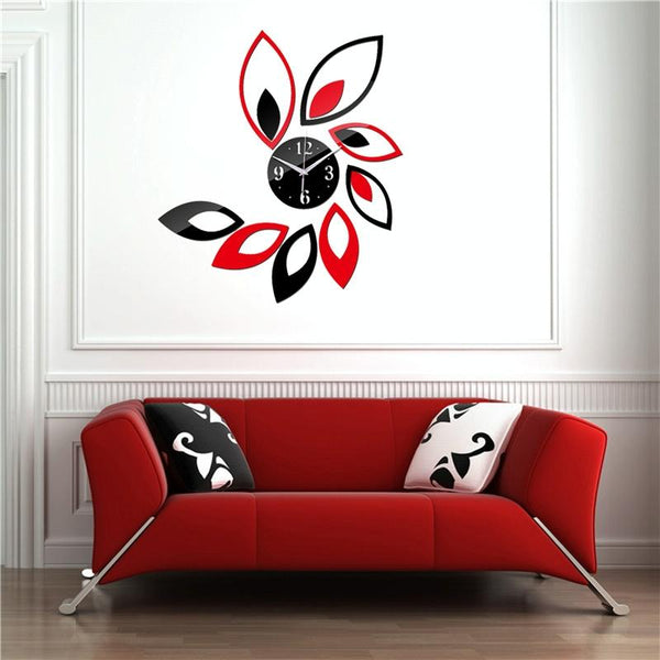 Flower Art Modern Design DIY Removable 3D Crystal Mirror Wall Clock Wall Sticker Living Room Bedroom Decor(Red+Black)