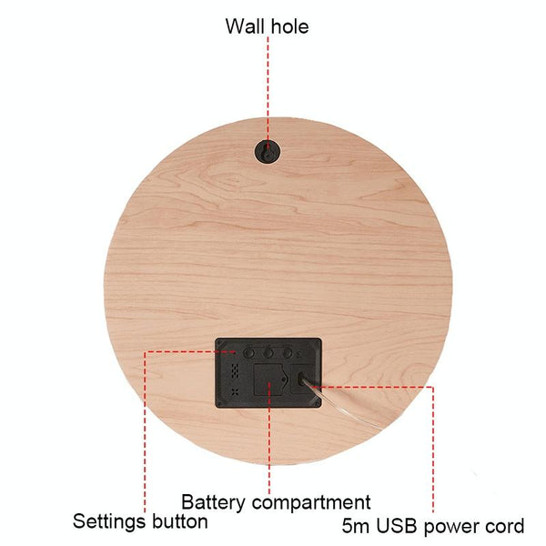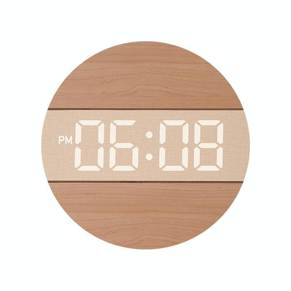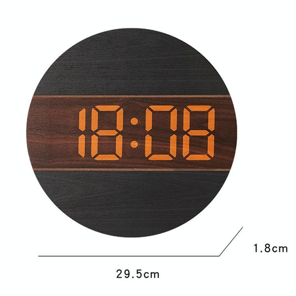 G218B Wooden Living Room Digital Display Clock Home Decoration Wall Clock(Khaki)