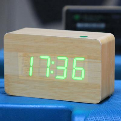 Green Number USB / Battery Wooden Clock with Voice Control (Alternately display time, month & date and temperature)(Green)