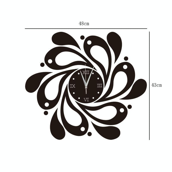 Home Crystal Acrylic Quartz Mirror Clock Jewelry Clock Petal Pattern Clock(Black)
