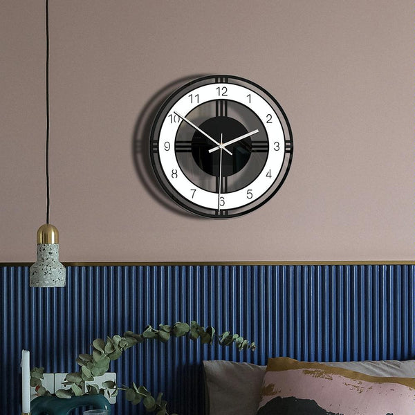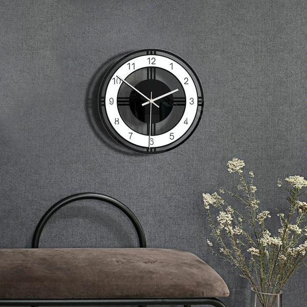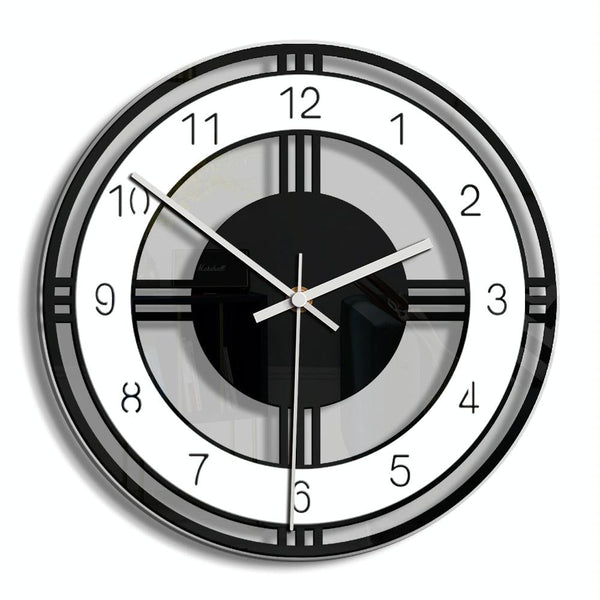Home Decoration Round Creative Wall Clock Living Room Bedroom Transparent Acrylic Retro Clock(Black)