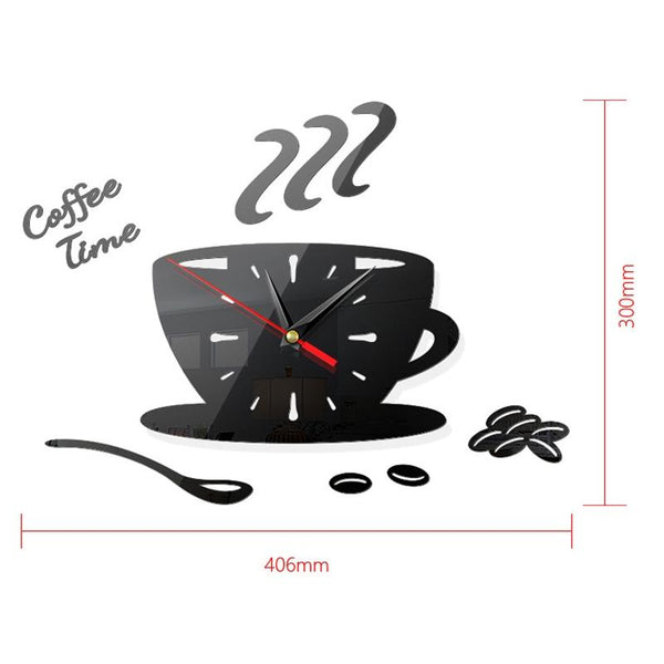 Home DIY 3D Stereo Decorative Fashion Coffee Wall Clock Acrylic Mirror Wall Sticker Coffee Clock(Red)