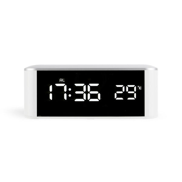 Home LED Mirror Multifunction Electronic Clock Mirror Clock Household Thermometer(White Word)