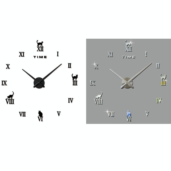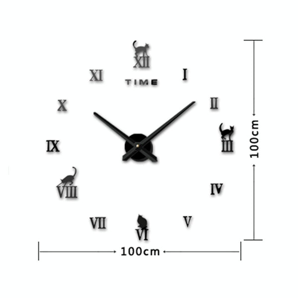 Home Office Decor Frameless Cat Shape Large Size DIY 3D Mirror Surface Wall Stickers Mute Clock, Size: 100*100cm(Black)