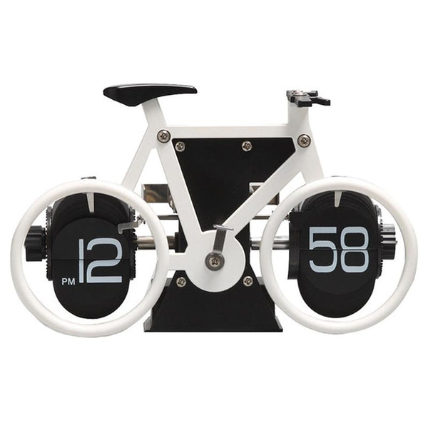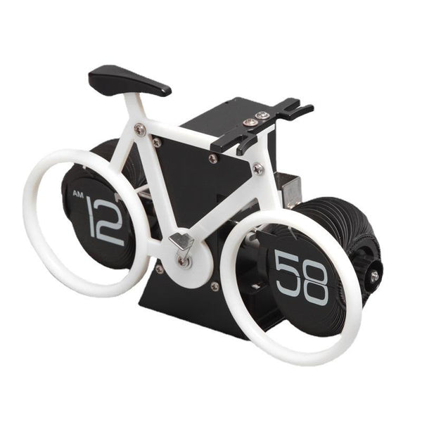 HY-F087 Retro Bicycle Shape Automatic Flip Home Decorative Turning Clock(White)