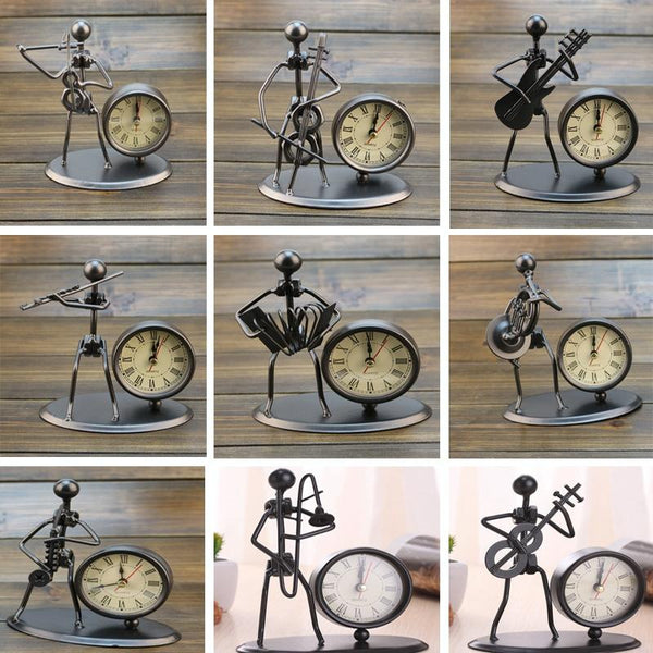 Iron Stainless Steel Small Table Clock Retro Personality Clock Birthday Gift(C67 French Horn Clock)