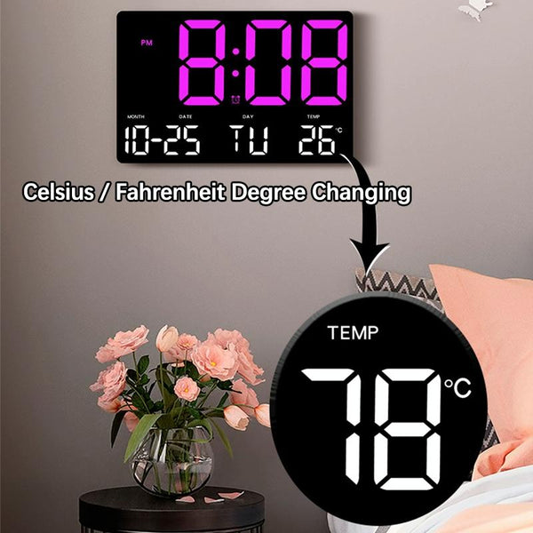 Large Display Led Digital Clock 5 Modes Brightness Adjustable Temperature Mute Electronic Clock(Red Double Color)
