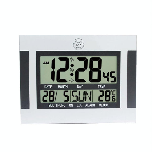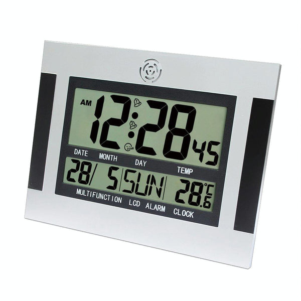 Large Screen LCD Wall Clock Minimalist Electronic Alarm Clock(Silver+Black)