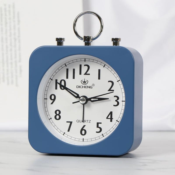 Lazy Silent Small Alarm Clock Office Home Desktop Clock(Blue)