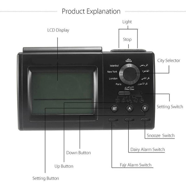 LCD Display Muslim AZAN Clock Arab Desktop Alarm Clock