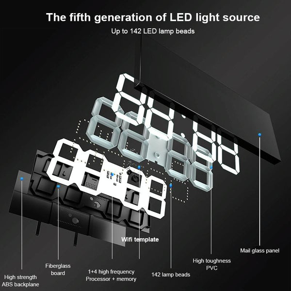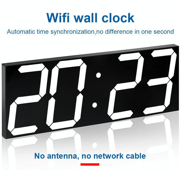 LED Digital Clock Living Room Wall Clock Creative WIFI Clock US Plug, Style:4 Bit WIFI, Color:Hollow Red