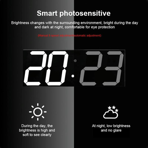 6. Function: mobile phone remote control, 5 groups of alarms, stopwatch, 999 days countdown, temperature display, calendar, intelligent light adjustment / manual 8-position brightness adjustment, power off memory function will not reset the time