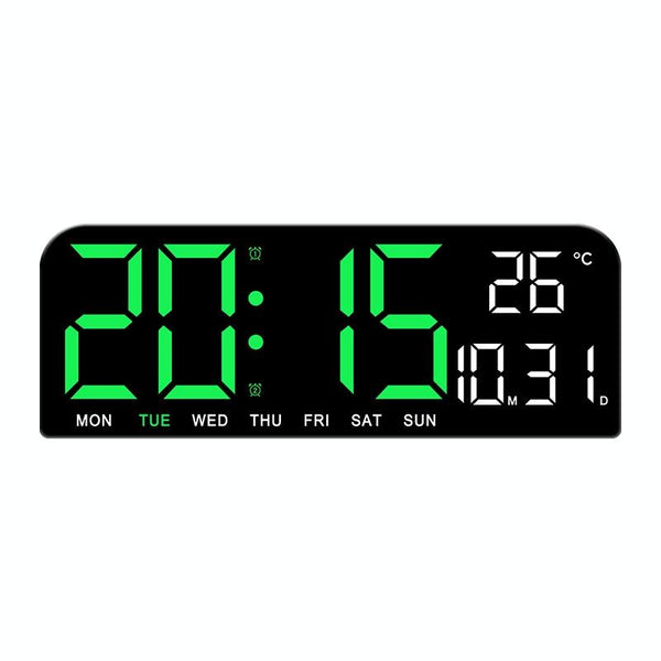 LED Screen Digital Display Desktop Alarm Clock Multifunctional Decoration Wall Clock(Green)