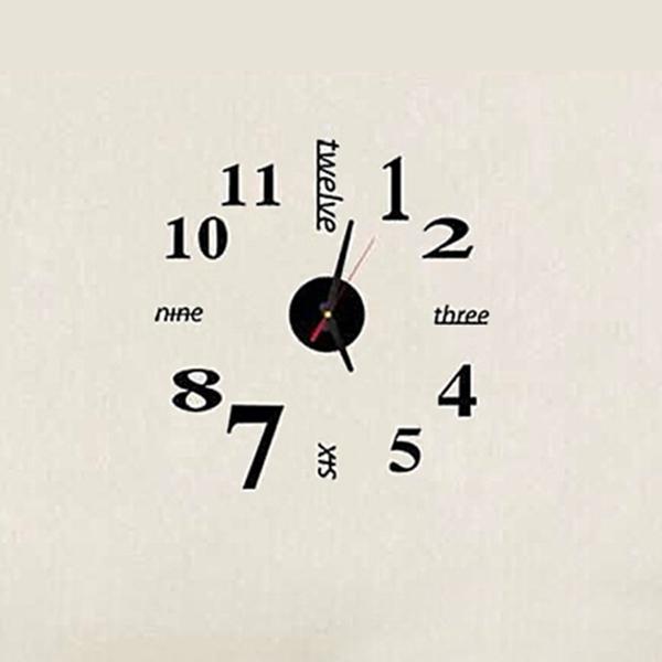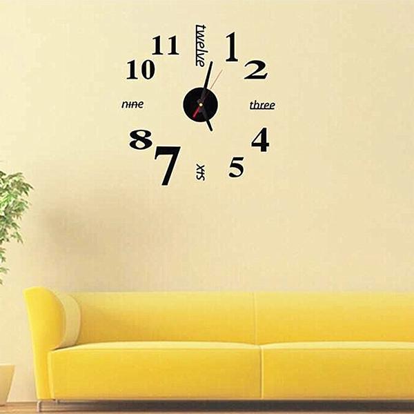 Lovelife WC37130 Acrylic English Digital DIY Stereo Wall Clock Wall Stick Clock (Black)