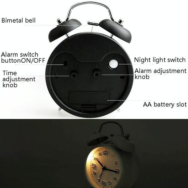 Metal Quality Mute Luminous Alarm Clock Classic Double Bell Clock(Yellow)