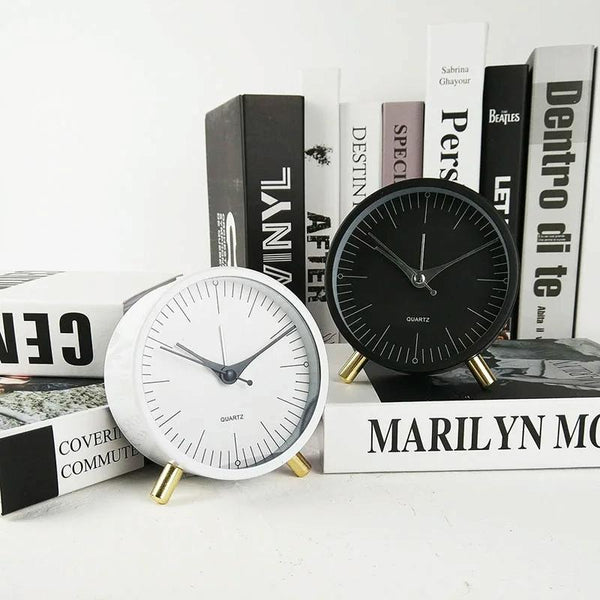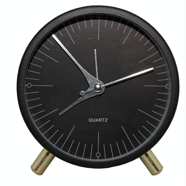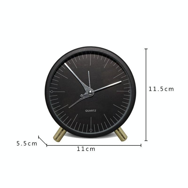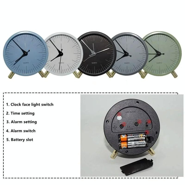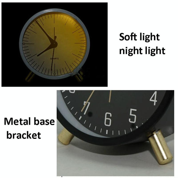 Metal Quartz Alarm Clock Simple Silent Desktop Round Pointer Living Room Clock(Black)