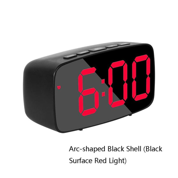 Mirror Bedside Alarm Clock Battery Plug-In Dual-Purpose LED Clock, Colour: Arc-shaped Black Shell (Black Surface Red Light)