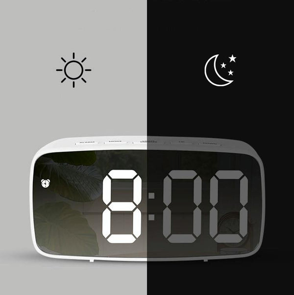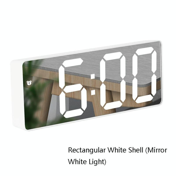 Mirror Bedside Alarm Clock Battery Plug-In Dual-Purpose LED Clock, Colour: Rectangular White Shell (Mirror White Light)