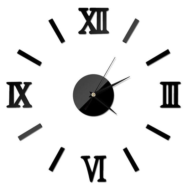 Modern DIY Indoor Roman Wall Clock Mirror Effect 3D Wall Sticker(Black)