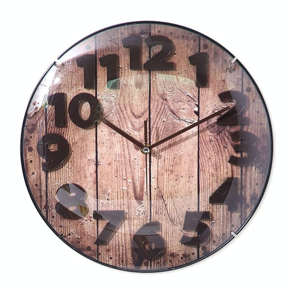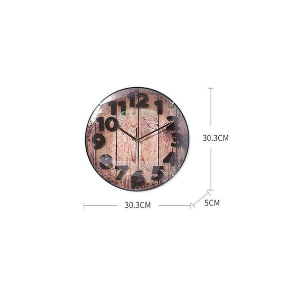Simple Retro Imitation Wood Grain Three-dimensional Digital Round Wall Clock