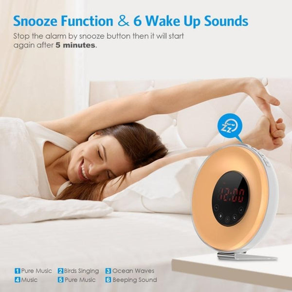 Simulated Sunrise And Sunset Sleep Light Alarm Clock with FM Radio(US Plug)