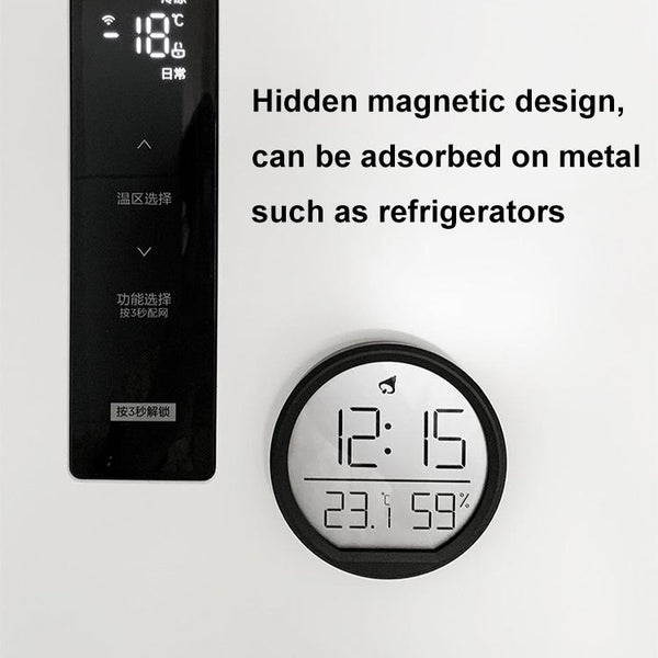 Slim Magnetic Thermometer And Hygrometer Clock Home Wall-Mounted Electronic Clock(Black)