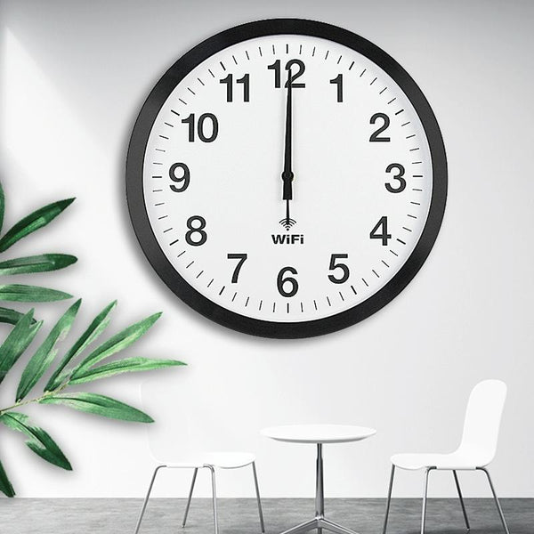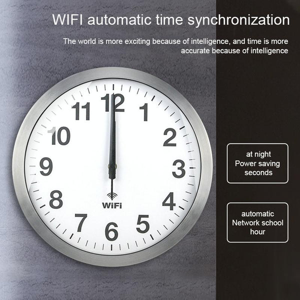 Smart Network Automatic Time Synchronization Wifi Wall Clock Modern Minimalist Silent Living Room Clock, Size:12 inch(Silver)