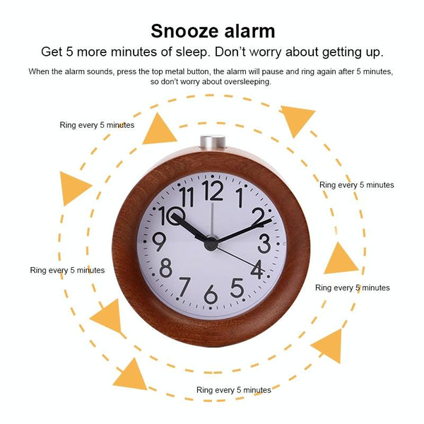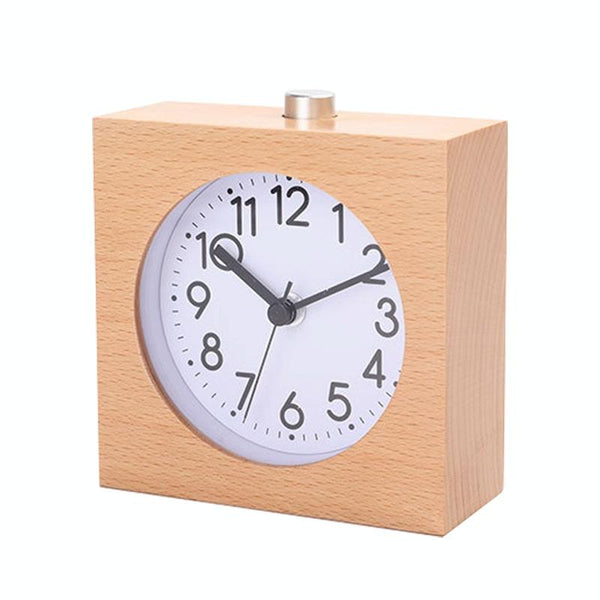 Solid Wood Silent Snooze Alarm Clock with Pointer(Square Wood Color)
