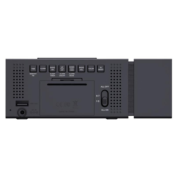 6. Function: infrared sensor / colorful night light / six groups of alarm clock / time display / calendar week / 1224 switch / FM radio / USB output / snooze function / temperature display / humidity display / Celsius / Fahrenheit switch