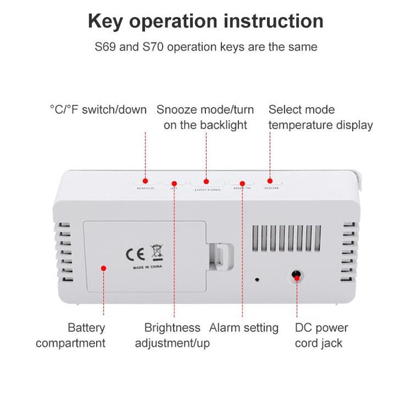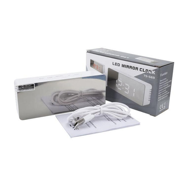 TS-S69-HW Multifunctional LED Alarm Clock Battery / Plug-in Charging Dual-purpose Make-up Mirror Clock(Grey White)