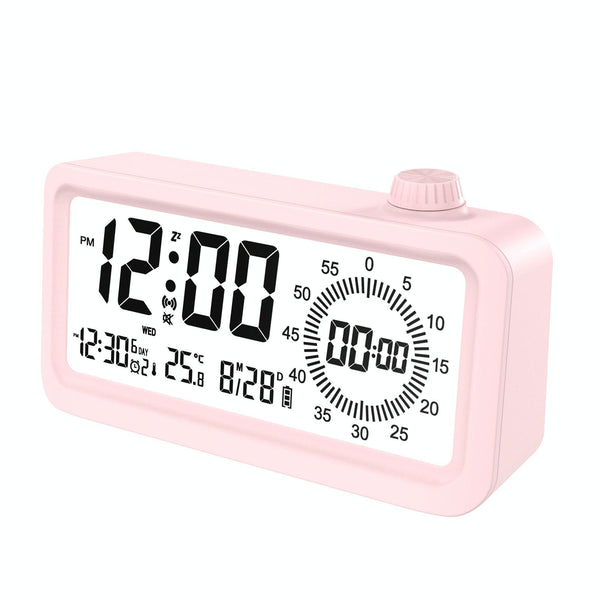 Visual Timer Alarm Clock Dual Display LCD Time Reminder(Pink)