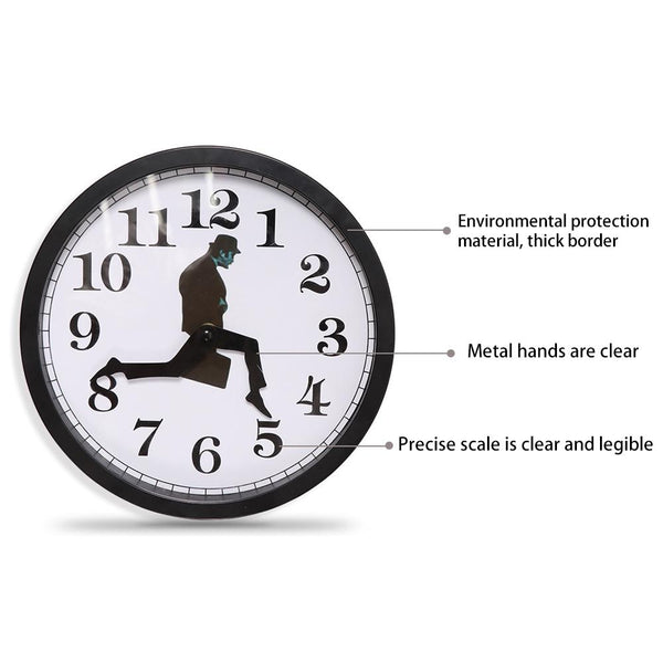 Walking Clock Businessman Briefcase Glass Wall Clock Personality Clock Decoration Round Clock(Black)