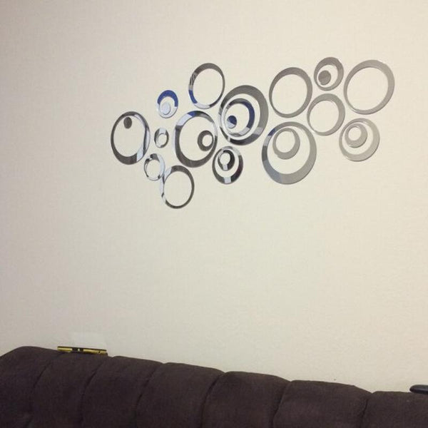 Wall Clock 3D Three-dimensional Acrylic Fashion Mirror Wall Stickers Clock DIY Circle Combination Decorative Clock(Silver)
