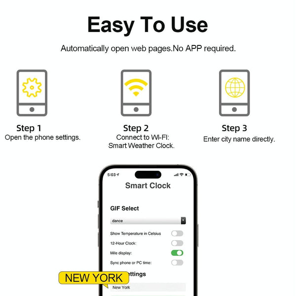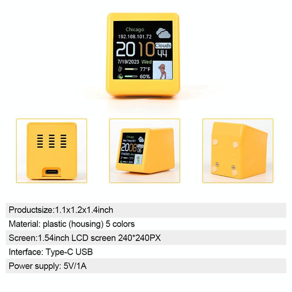 Wifi Networked Weather Clock No APP Required Photo Album with Gif Animation(Yellow)