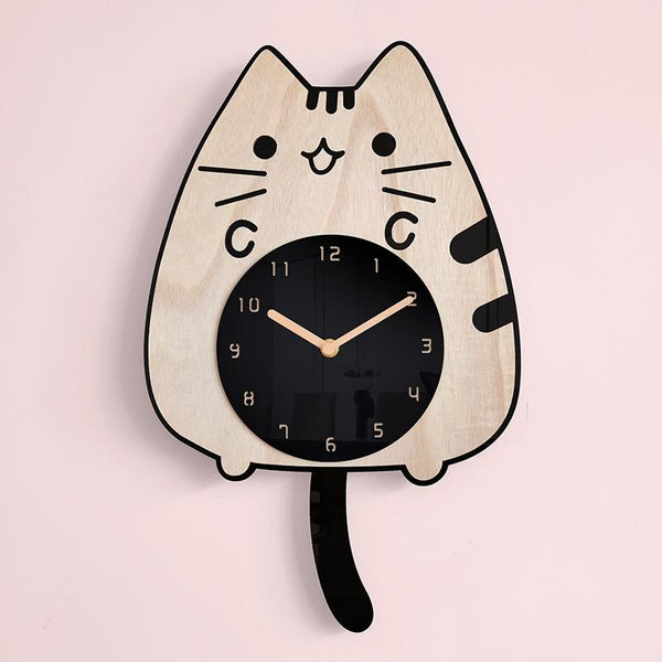 Wooden Cartoon Clocks Home Decoration Living Room Cat Wagging Tail Swinging Wall Clock