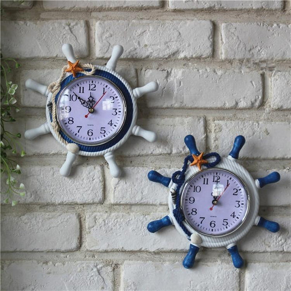 Wooden Helmsman Ship Wheel Shape Decorative Living Room Wall Clock, Size: 22*22*2.5cm