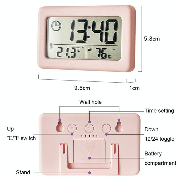 YD005 Mini Light and Thin LCD Screen Temperature/Humidity Meter Electronic Clock(Red)