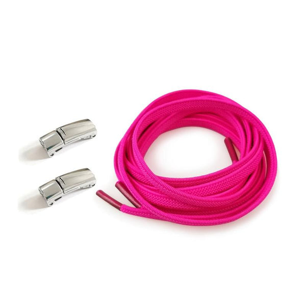 1 Pair SLK28 Metal Magnetic Buckle Elastic Free Tied Laces, Style: Silver Magnetic Buckle+Rose Red Shoelaces