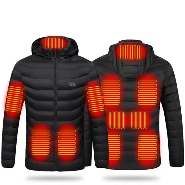 11 Zone Double Control Black USB Winter Electric Heated Jacket Warm Thermal Jacket, Size: XXXXL