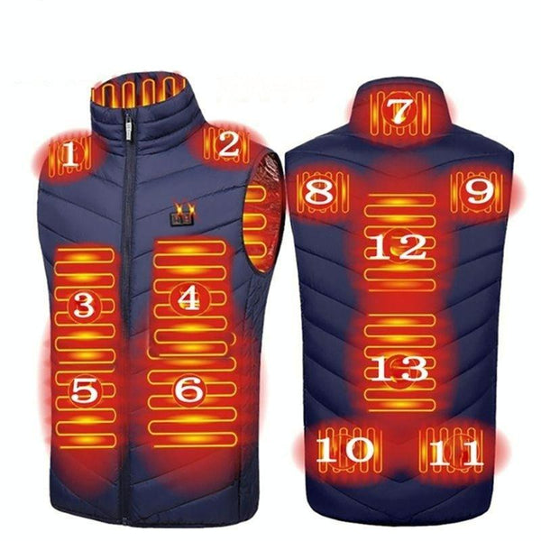13Area Double ControlBlue USB Electric Heating Undershirt Intelligent Warm Vest(5XL)
