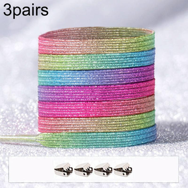 3pairs Elastic No Tie Shoelaces Metal Lock Dazzling Color Laces 100cm(Colorful)