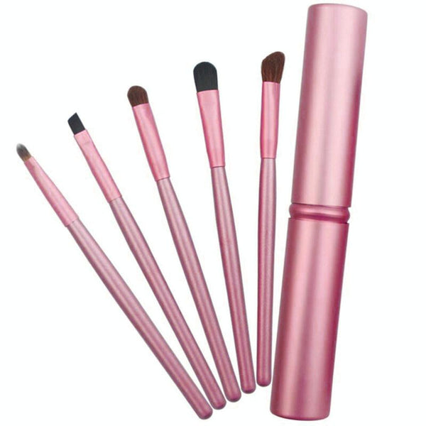 5 PCS Handle Eyes Makeup Brush Set with Aluminum Tube(Pink)