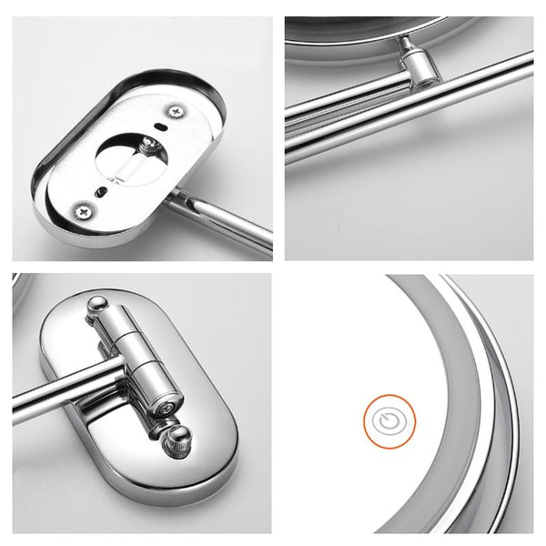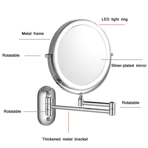 8 Inch Wall-Mounted Double-Sided Makeup Mirror LED Three-Tone Light Bathroom Mirror, Colour:Battery Models Black(Five Times Magnification)
