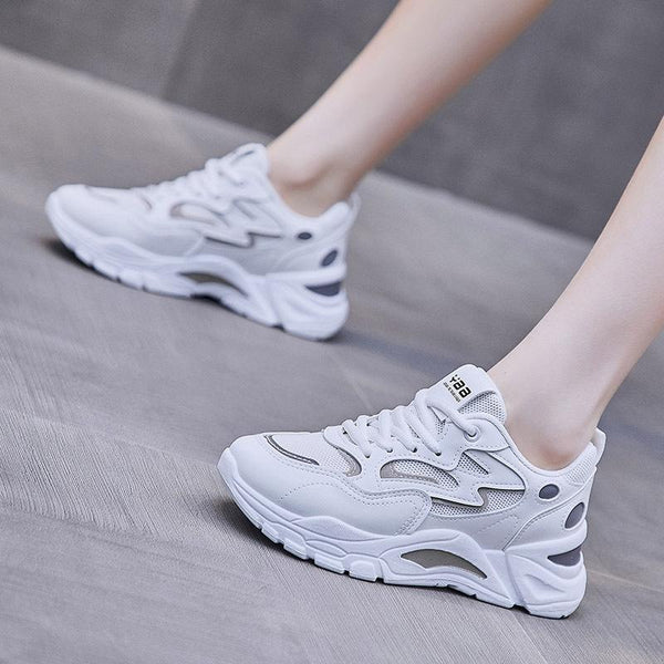 811-1 Spring Breathable Casual Shoes Leather-paneled Mesh Ladies Sports Shoes, Size: 38(White)