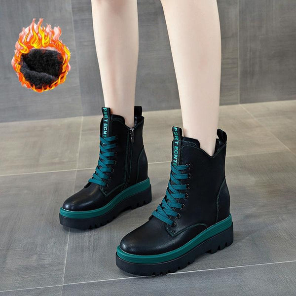 8cm Height Martin Boots Ladies Thick Bottom Leather Short Boots, Size: 39(With Velvet)