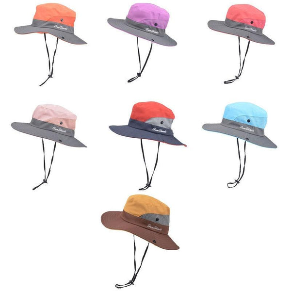 9002 Summer Women Outdoor Sun Hats Fisherman Hat With Ponytail Hole(Two-color Children Pink)
