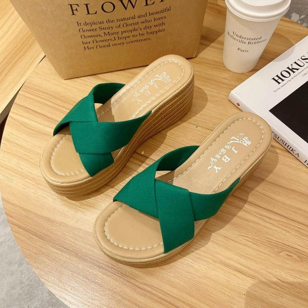 999 Ladies Wedge Platform Slippers, Size: 34(Green)