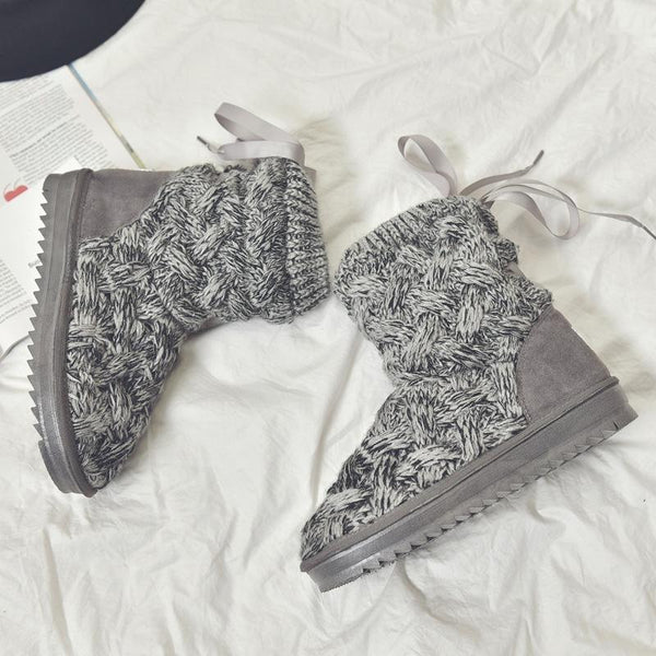 A1 Autumn and Winter Knitted Wool Fleece Thickened Non-slip Boots, Size: 36(Grey)