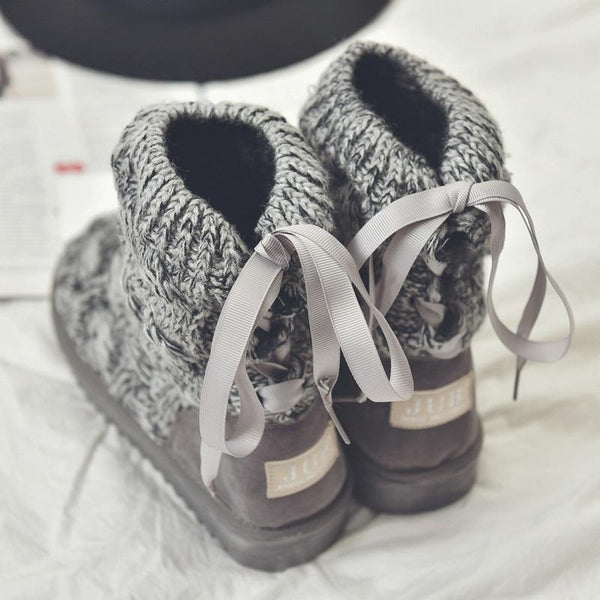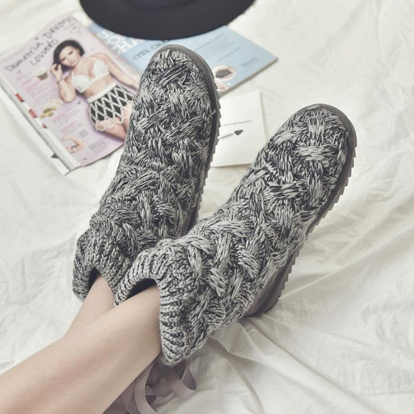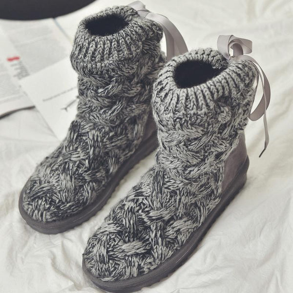 A1 Autumn and Winter Knitted Wool Fleece Thickened Non-slip Boots, Size: 40(Grey)